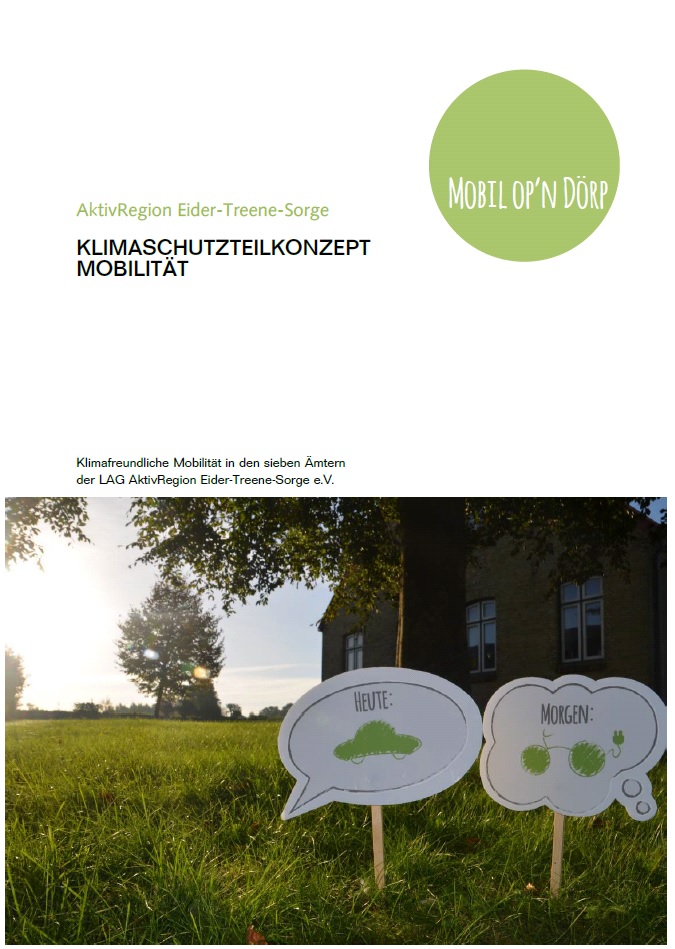 Das Klimaschutzteilkonzept Mobilität der AktivRegion Eider-Treene-Sorge wird im Frühjahr 2017 fertiggestellt. In mehreren Zukunftswerkstätten haben Gemeindevertreter und Bürger Ideen für eine bessere Mobilität auf dem Land entwickelt und deren Nutzen für die Region diskutiert. Für die Gemeinden gilt es nun, die am besten zur örtlichen Struktur passenden Maßnahmen zu ergreifen und umzusetzen. Drei Konzeptpapiere stellen die besten umsetzbaren Projekte in kompakter Form vor. Sie stellen jeweils die Ziele, Kosten, konkrete Umsetzungsschritte und Ansprechpartner dar und können ab sofort auf www.aktivregion-ets.de sowie den Seiten der Amtsverwaltungen heruntergeladen werden.