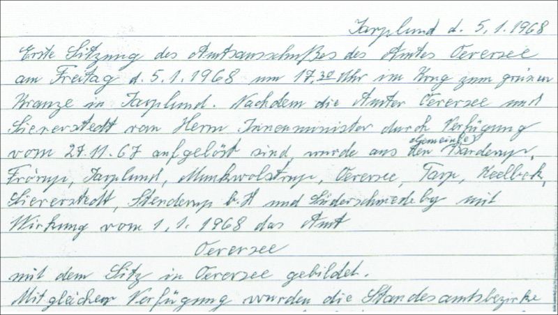 (mit dem bereits eingemeindeten Ortsteil Poppholz) entstand das heutige Sieverstedt. Tarp bildete sich aus den Altgemeinden Tarp und Keelbek-Tornschau. 1974 schied die Gemeinde Jarplund aus dem Amtsverbund aus. Sie wurde als neue Gemeinde Jarplund-Weding in das Amt Handewitt eingegliedert. Der Amtssitz, der sich ursprünglich in Oeversee befand, wurde im gleichen Jahr nach Tarp verlegt. Im Jahr 1991 wurde das Dachgeschoss errichtet, um dem zusätzlichen Platzbedarf der Verwaltung und auch des Archivs zu decken. Nach einer umfassenden energetischen Renovierung und Farbneugestaltung in den Jahren 2013/2014 präsentiert sich das Amt in seiner heutigen Form.
